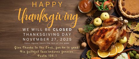 Monday- 7:00am- 6:00pm Tuesday- 7:00am- 6:00pm Wednesday- 7:00am- 6:00pm Thursday- 7:00am- 6:00pm Friday- 7:00am- 6:00pm Saturday 7:00am- 3:00pm Sunday- CLOSED
